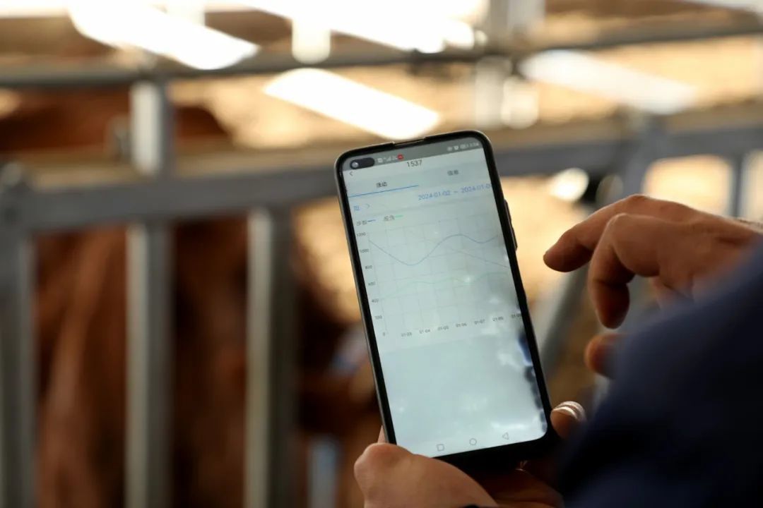 “有了智能项圈,我们就可以实时监测牛是否发情,能够及时配种,从而缩短胎间距。”杨凌秦宝牛业有限公司技术品控部部长吕宝龙说。