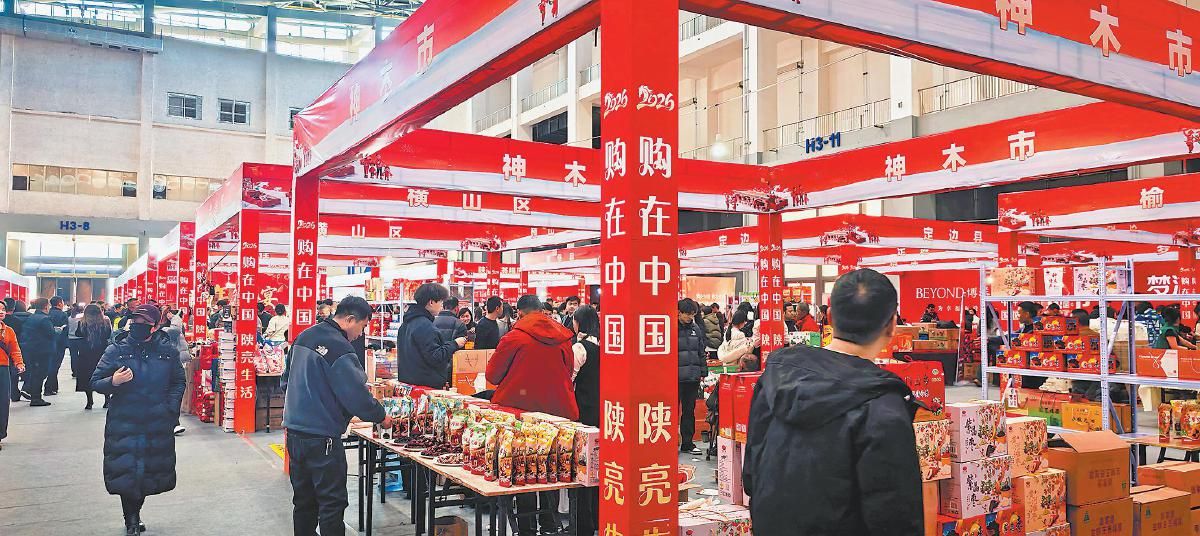 红火的春联、喜庆的灯笼、琳琅满目的年货、络绎不绝的人群……2月7日,榆林会展中心人潮涌动、热闹非凡,2026年榆林年货大集暨第三届榆林市名小吃大赛在这里拉开帷幕。一大早,不少市民携家带口赶来,在浓浓的节日氛围中采购年货、品味美食。