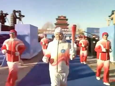 陕西省第一届冬季运动会火炬传递榆林榆阳站 杨翠萍担任第二棒火炬手