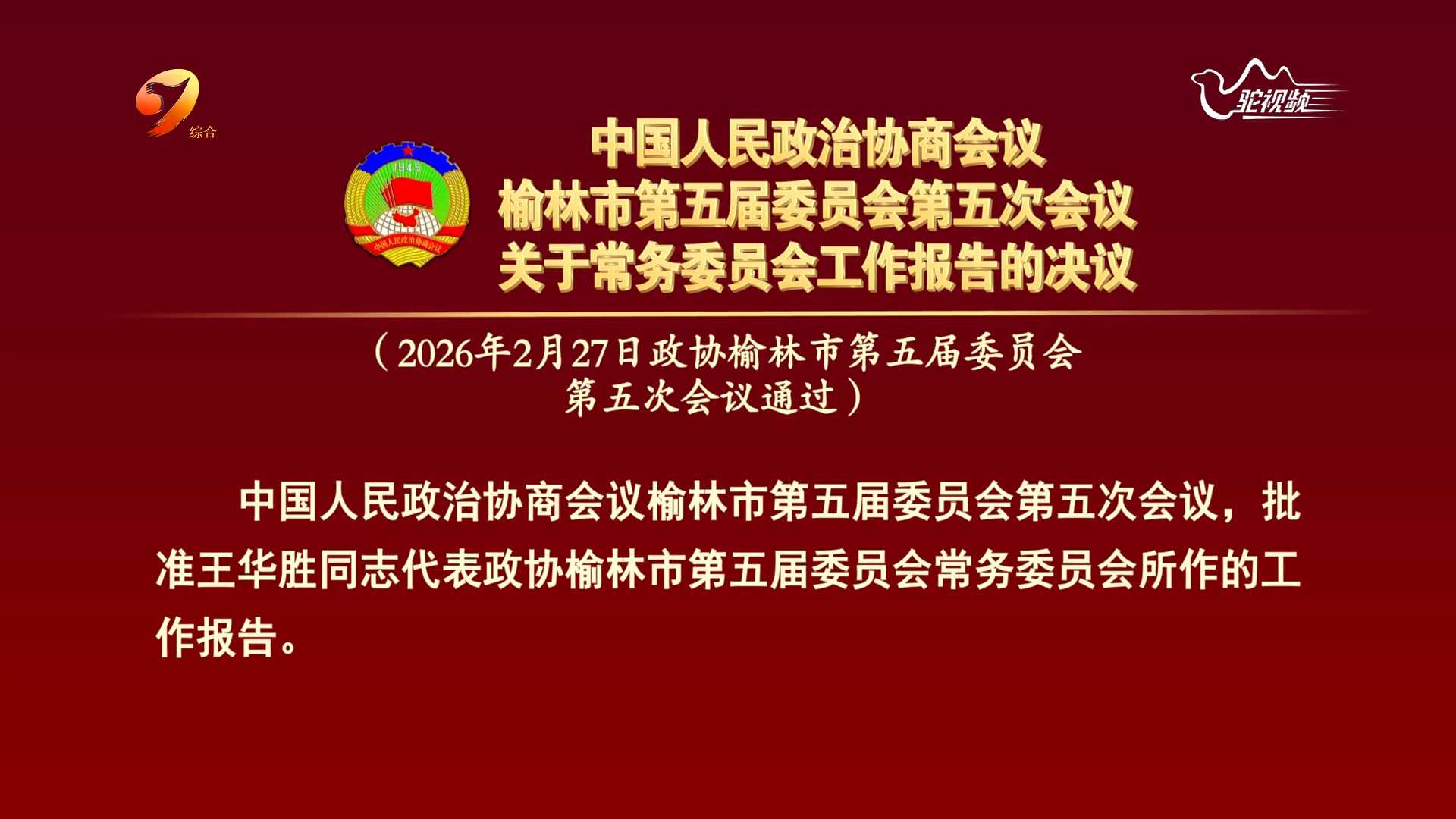 中国人民政治协商会议榆林市第五届委员会第五次会议关于常务委员会工作报告的决议