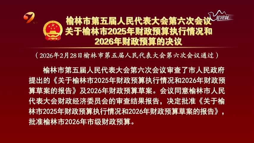 榆林市第五届人民代表大会第六次会议关于榆林市2025年财政预算执行情况和2026年财政预算的决议