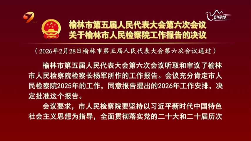 榆林市第五届人民代表大会第六次会议关于榆林市人民检察院工作报告的决议
