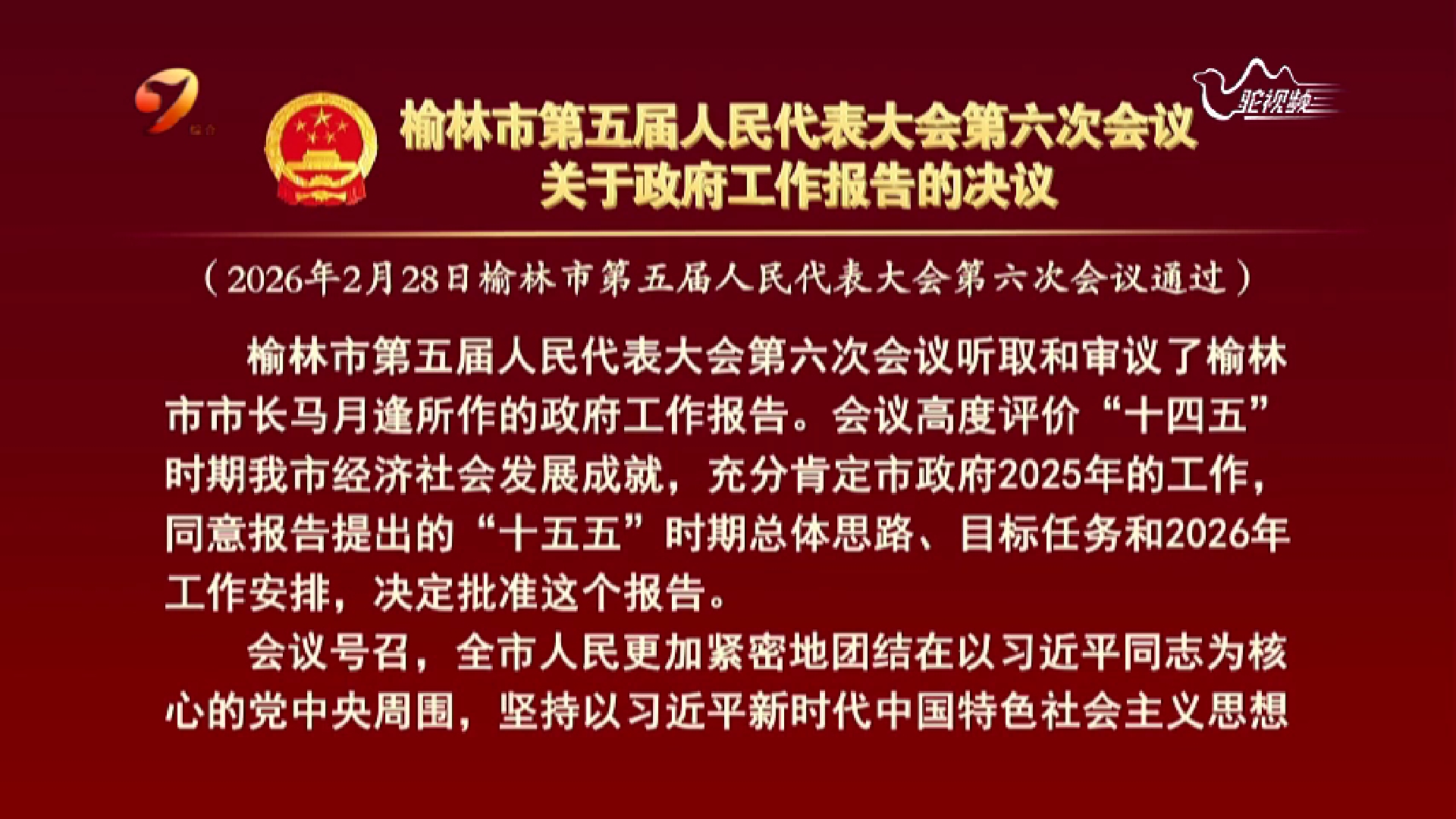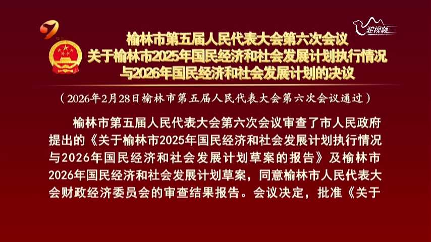 榆林市第五届人民代表大会第六次会议关于榆林市2025年国民经济和社会发展计划执行情况与2026年国民经济和社会发展计划的决议