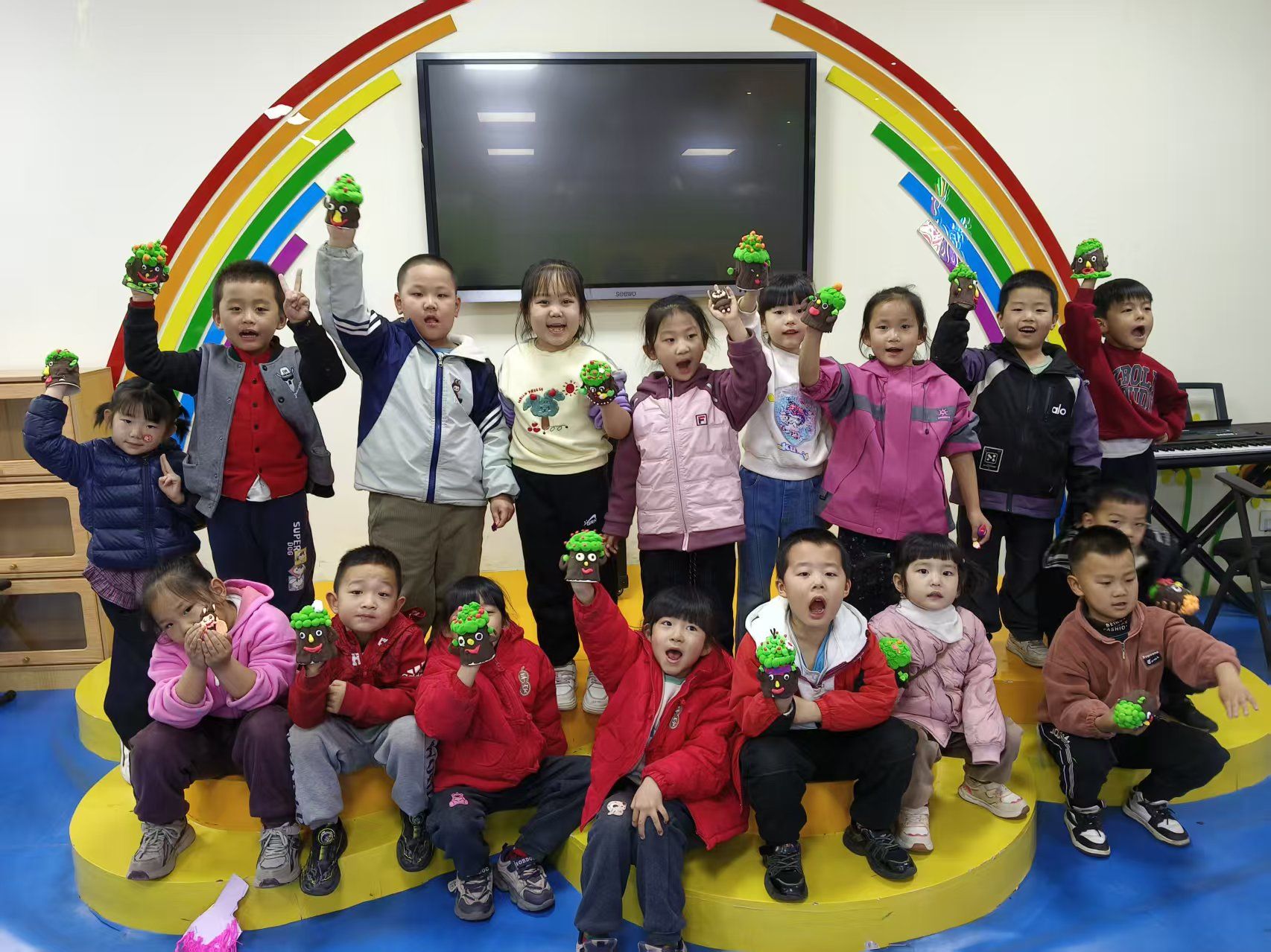 刘奶奶在社区按摩的同时,社区童乐园里,她8岁的孙子妮妮正和小伙伴们围在手工老师身边,专注地捏着黏土。妮妮的父母平时工作忙,刘奶奶又身体不好,放学和周末的托管曾是家里的大难题,得知社区推出了 “泡泡泥”课堂,刘奶奶带着妮妮第一个就来了,一老一小在社区里过的不亦乐乎。