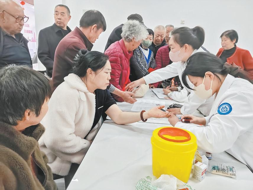 与此同时,在公园社区日间照料中心里,社区联合金沙路社区卫生服务中心开展慢病防治义诊活动。医护人员耐心为居民测量血压、血糖,开展高血压、糖尿病等慢性病的筛查与健康指导。“阿姨,您空腹血糖值在正常范围,但平时还是要控制精细主食量。”医护人员一边记录数据,一边细致叮嘱。