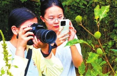 学生用相机、手机记录药用植物资料。