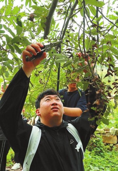 学生采集枝条,用于植物标本制作。