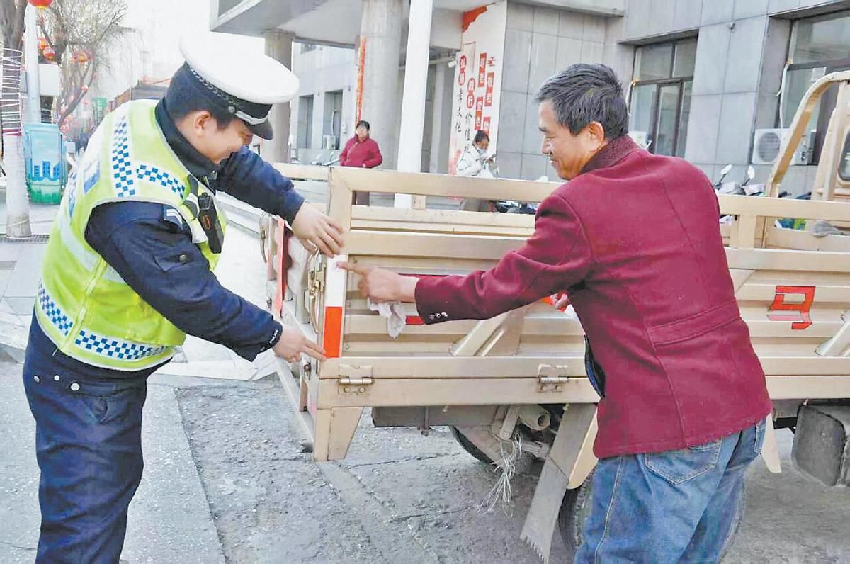 民辅警在主要路段、路口设置检查点,对过往车辆进行检查。一旦发现尾灯不亮、反光标识不清等问题,当场对驾驶员进行交通安全教育,详细讲解“亮尾”对行车安全的重要性,并协助驾驶员清理尾灯、张贴反光标识,确保车辆尾部清晰可见。