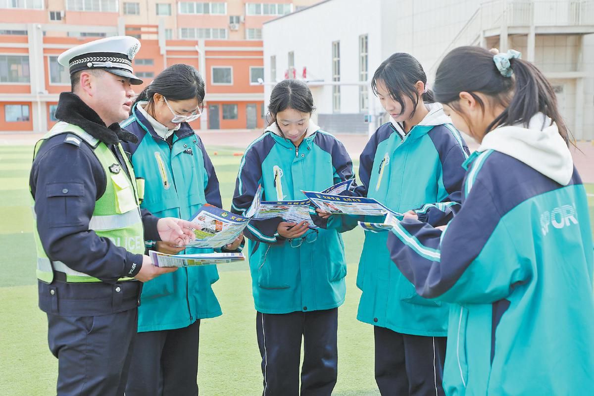 活动中,民辅警结合学生日常出行特点,用通俗易懂的语言讲解步行、骑行、乘车等常见场景的安全注意事项,重点强调不闯红灯、不横穿马路、不乘坐超员车辆等要点。图为宣传活动现场。