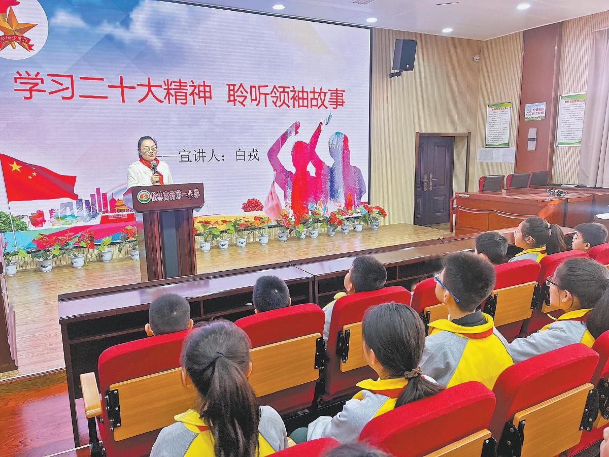 近日,榆林高新第一小学举办红领巾大讲堂,集中学习二十大精神。