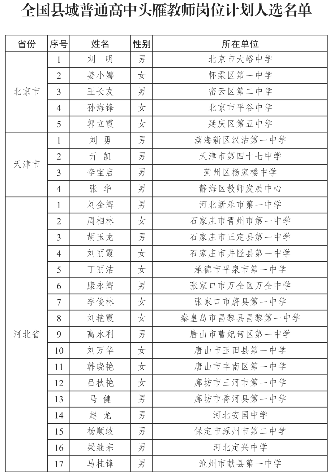 据首都教育微信公众号消息,日前,教育部发布通知,经学校自主申报、省级教育行政部门审核公示、等额推荐、会议评议,确定首批全国县域普通高中头雁教师岗位计划入选教师600人。
