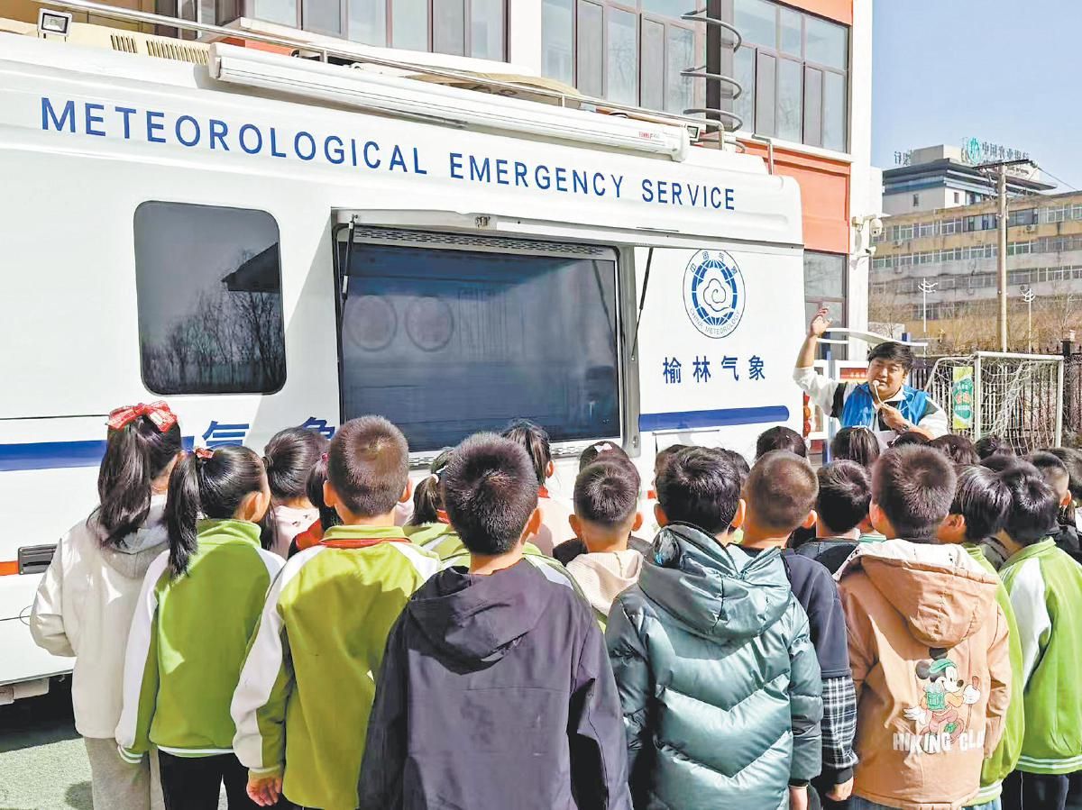 榆林市气象局工作人员现场讲解气象知识。方慧 摄
