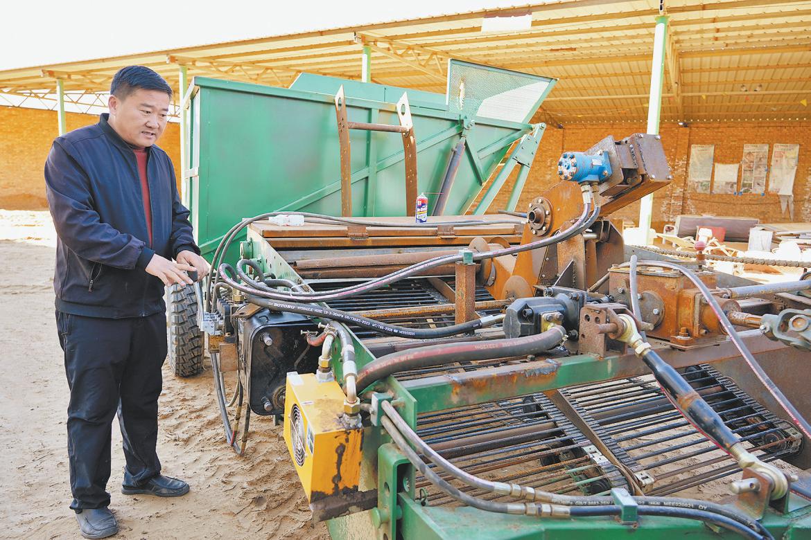 罗鹏胜展示膜茬分离回收机。 白凌燕 摄