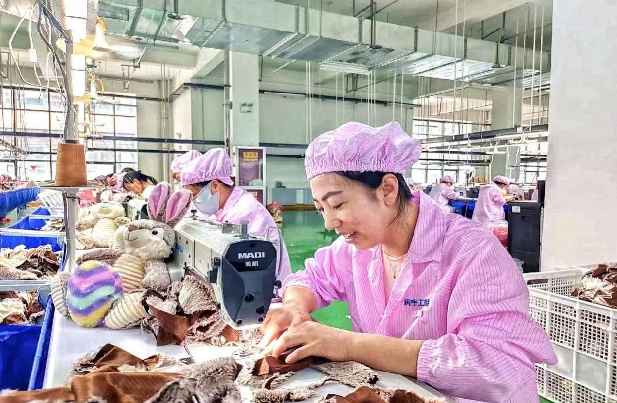 “公司于2024年投产,主要从事工艺礼品、毛绒玩具及动漫工艺品的生产与销售,能吸纳200多人就业。”榆林润宇工艺品有限公司负责人李逊说。