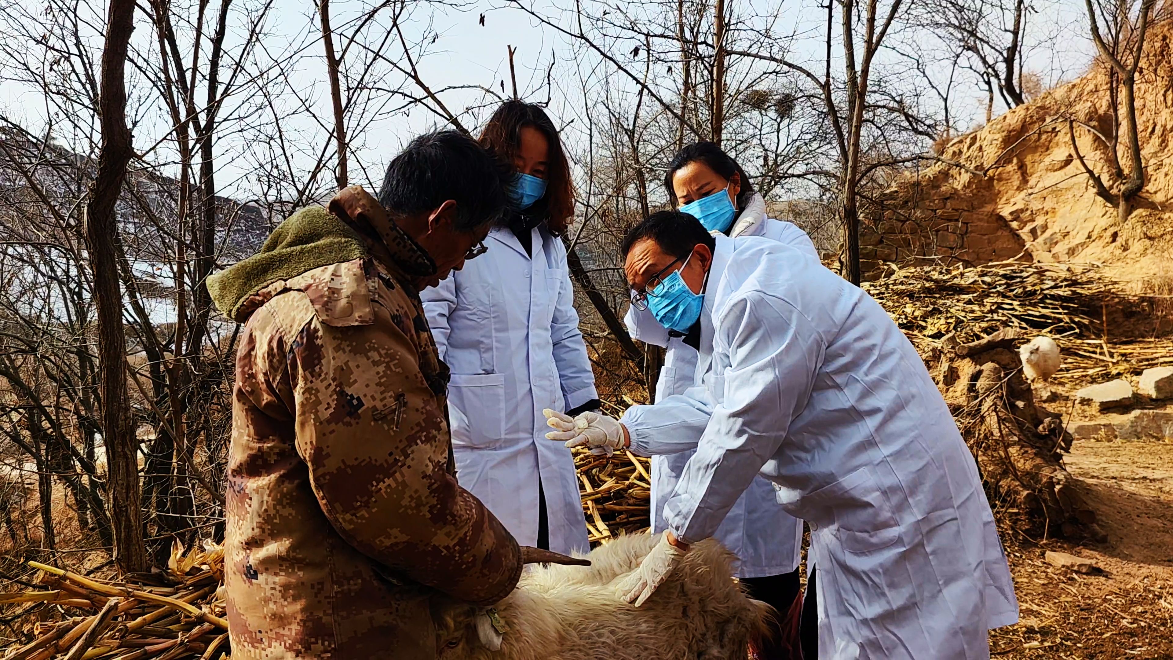 图为府谷县畜牧技术中心专业人员在武家庄镇郝家塔村为养殖户现场指导,排忧解难。