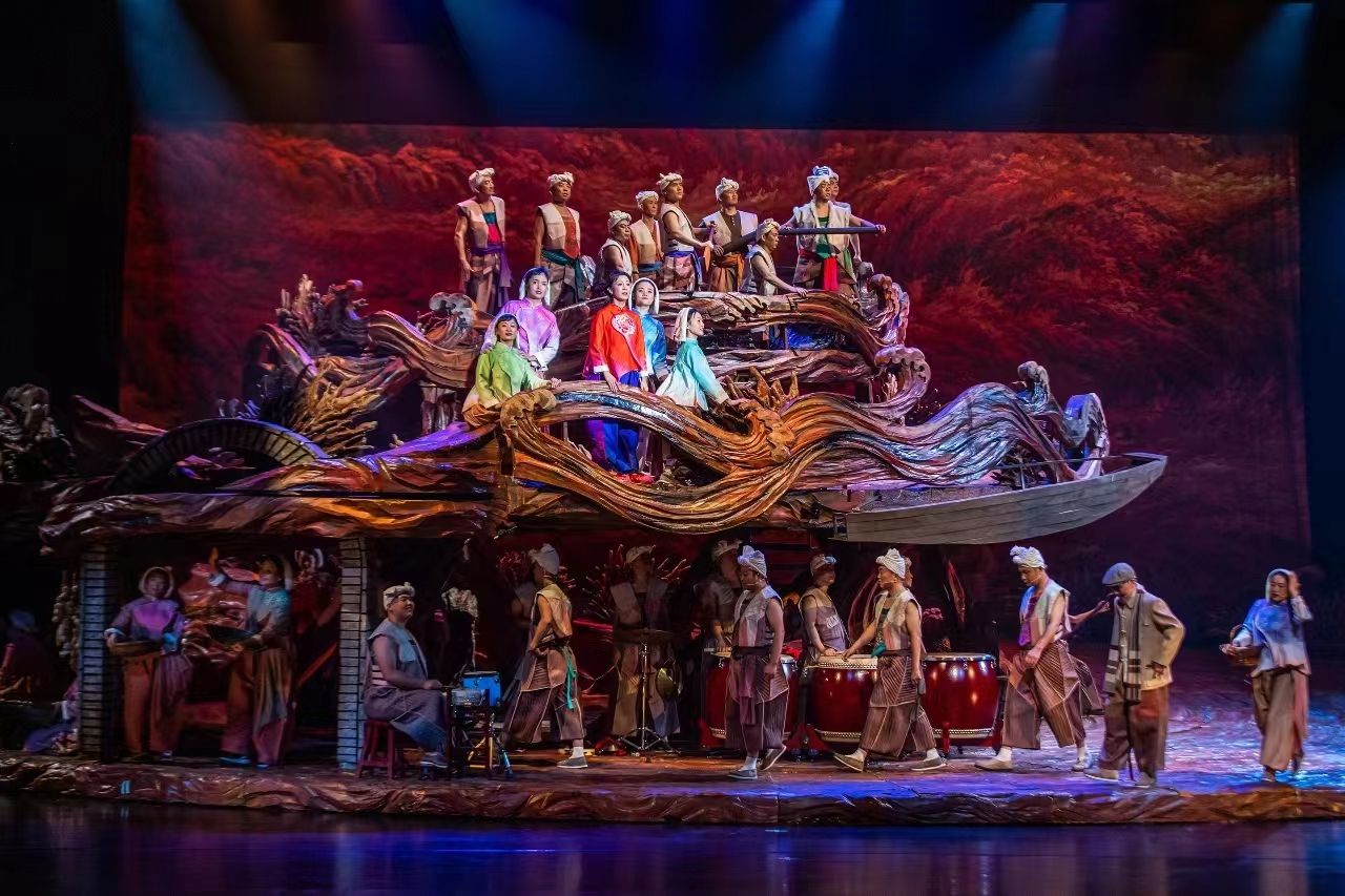 第十届陕西省艺术节“文华大奖”获奖剧目——陕北民歌剧《黄河船夫》演出现场。 记者 刘香 摄