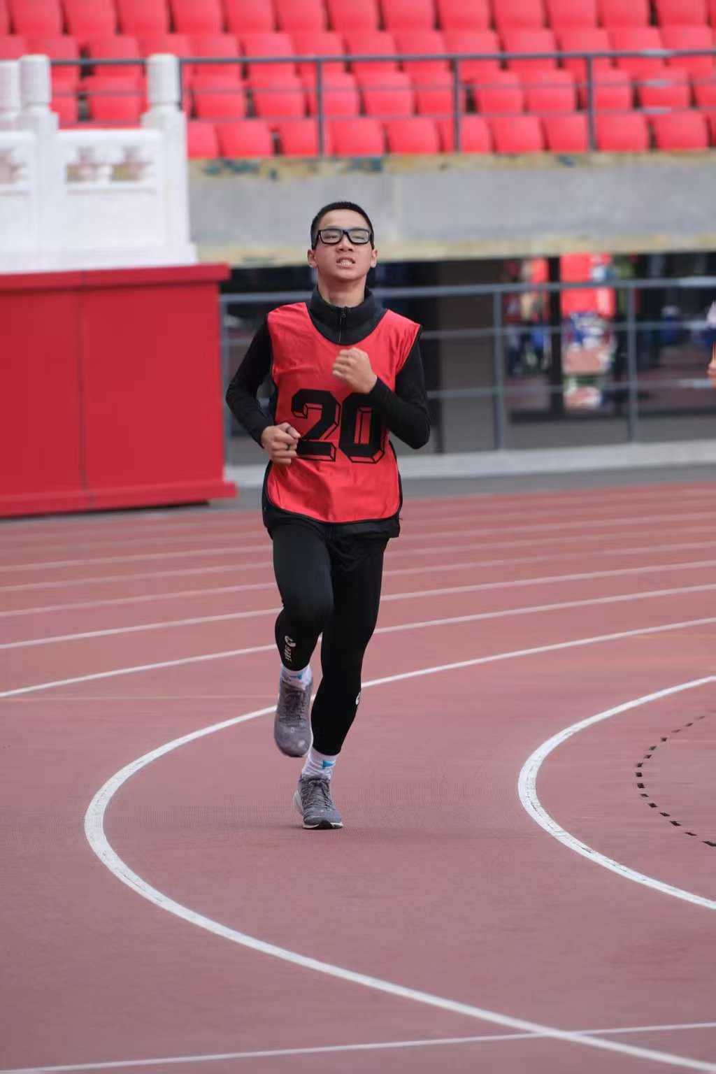 王炫淇在操场上跑步锻炼。张瑜 摄