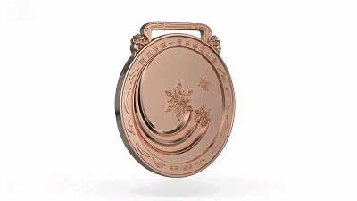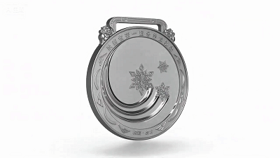 奖牌方面,设计巧妙融合三秦地域文化与冰雪运动特色:三条弧线旋转变幻为三枚雪花,圆润的弧线承载陕北历史的厚重底蕴,中间流畅的图像环绕雪花象征关中平原的灵动活力,下方线条分割出的陕南梯田造型,提炼出陕南山水田园的秀美神韵,三者共同凝练出陕西的地理与文化特质。中间汇聚的三片雪花,既呼应中国传统“三为多”的意象(契合“陕北、关中、陕南”三秦格局),又点明冬季运动的“冰雪”属性,旋转造型更寓意三秦各地的热情与活力向赛事核心汇聚。