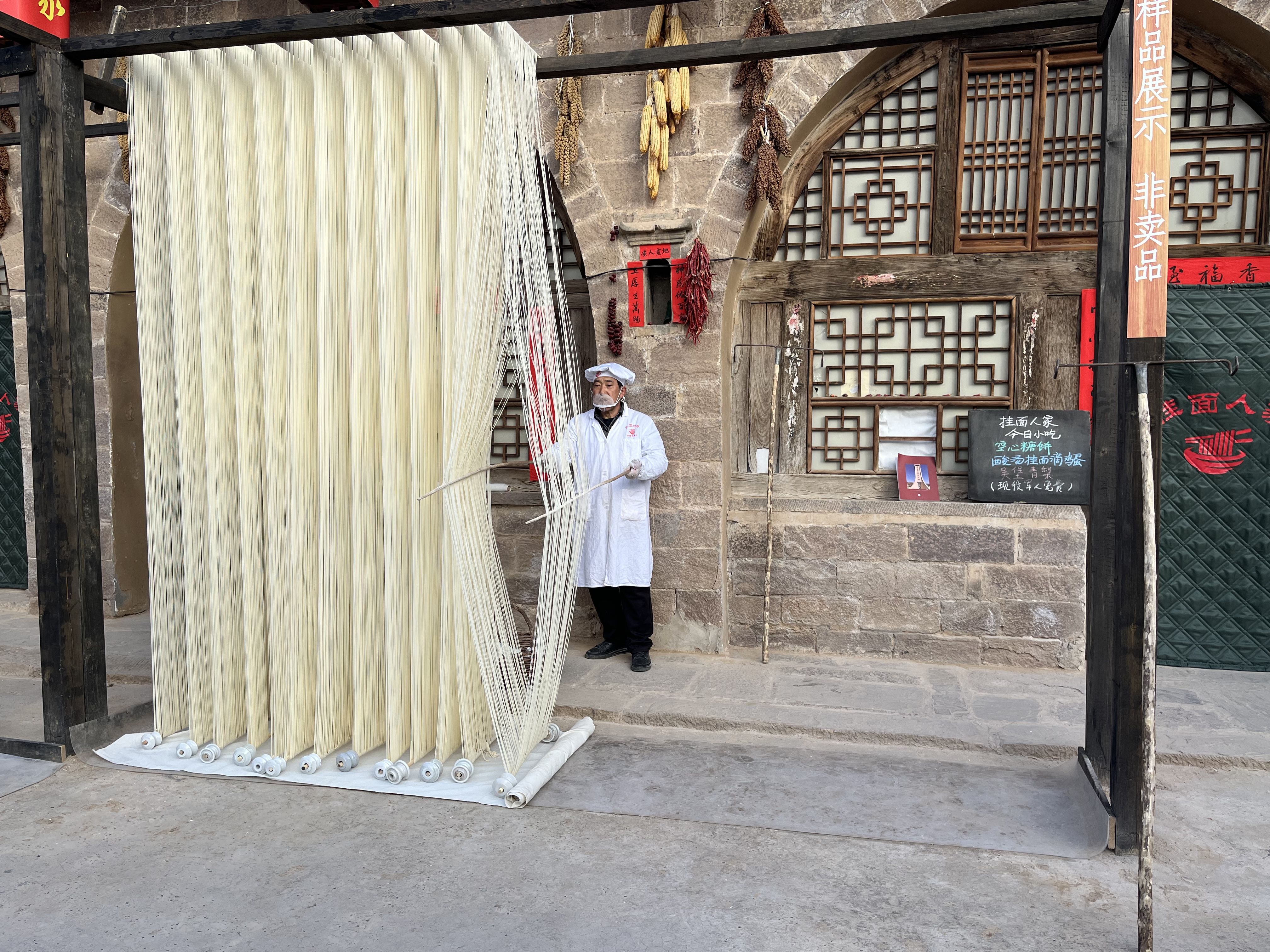 马虎雄在晾晒吴堡空心手工挂面。刘香 摄