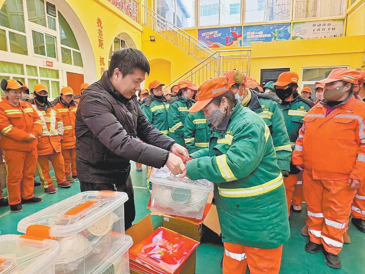 活动现场,慰问人员为183名环卫工人和33名污水处理厂职工送上年茶饭、春联等充满年味的慰问品,将工会“娘家人”的温暖传递到职工手中。慰问人员还与职工亲切交谈,仔细询问大家的工作和生活情况,对他们不畏严寒酷暑,始终坚守岗位,为维护城市环境整洁、保障污水处理设备稳定运行所作出的贡献表示衷心感谢,并叮嘱他们在寒冷天气下作业要注意防寒保暖,时刻牢记安全生产。
