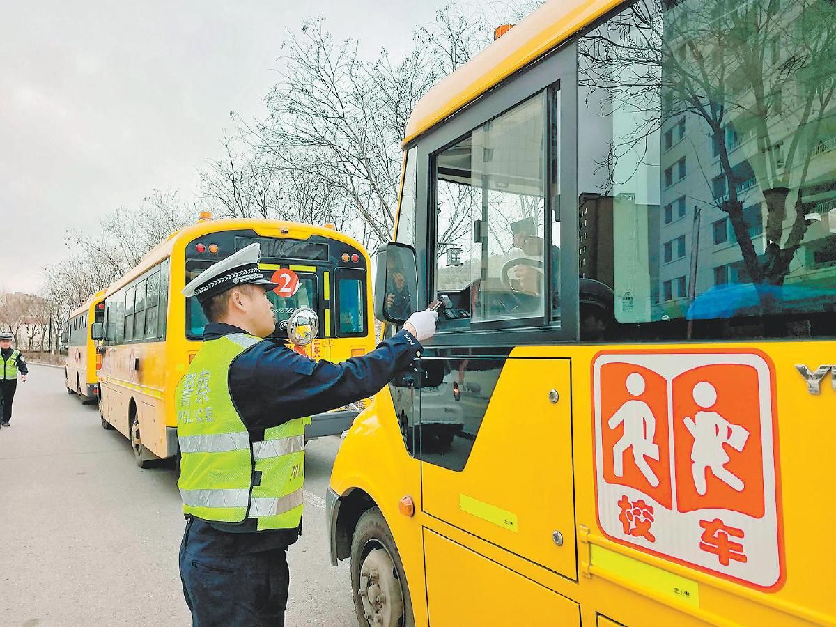 近日,子洲县公安局交通管理大队组织民辅警,深入辖区各学校,开展校车安全、超员、不系安全带等专项整治检查行动,严管严查,筑牢校园交通安全“防护墙”。