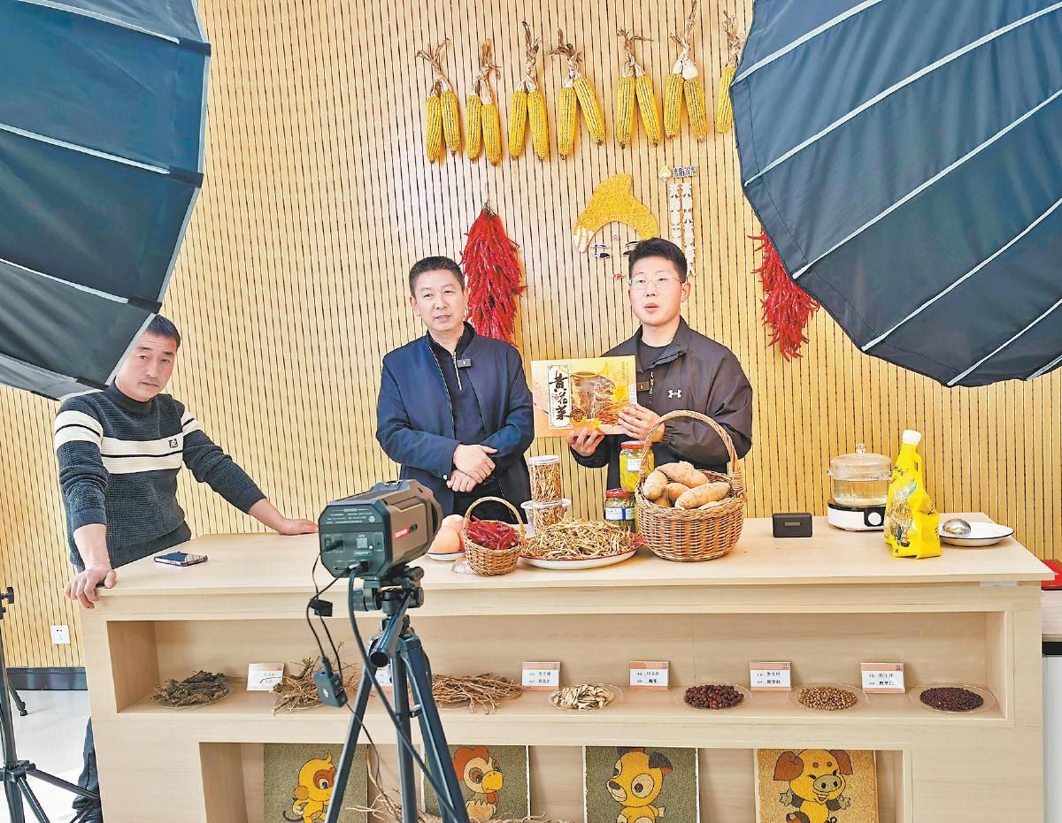印斗镇电商创业中心直播推介本地农产品。周海月 摄