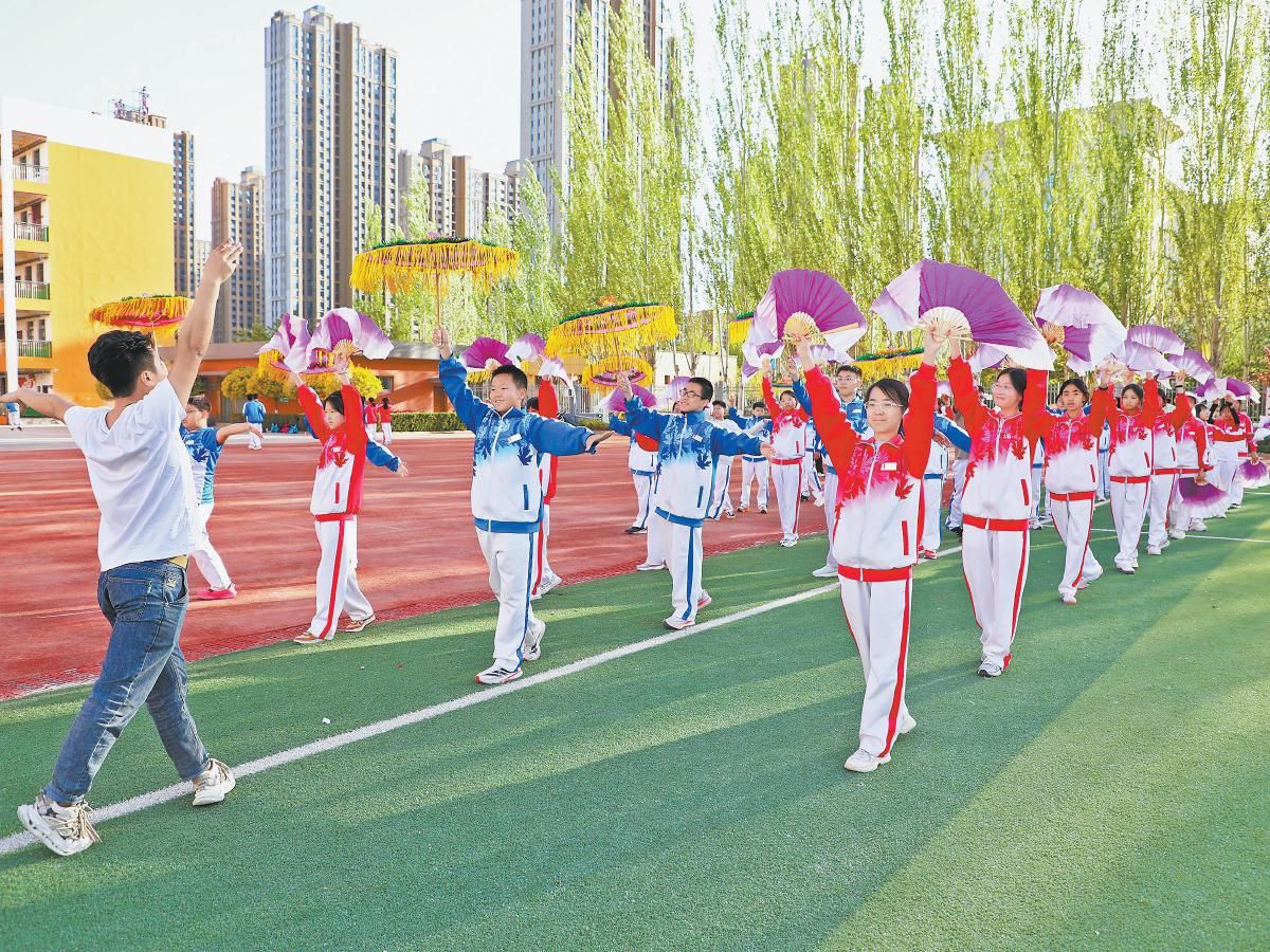 4月17日,榆林高新一中的操场上,陕北秧歌社团的学生们身着统一校服,和着明快的鼓点踏步行进、扭摆身姿。一招一式间,既展现出陕北人豪迈洒脱的精气神,更透着青少年认真投入的劲头。