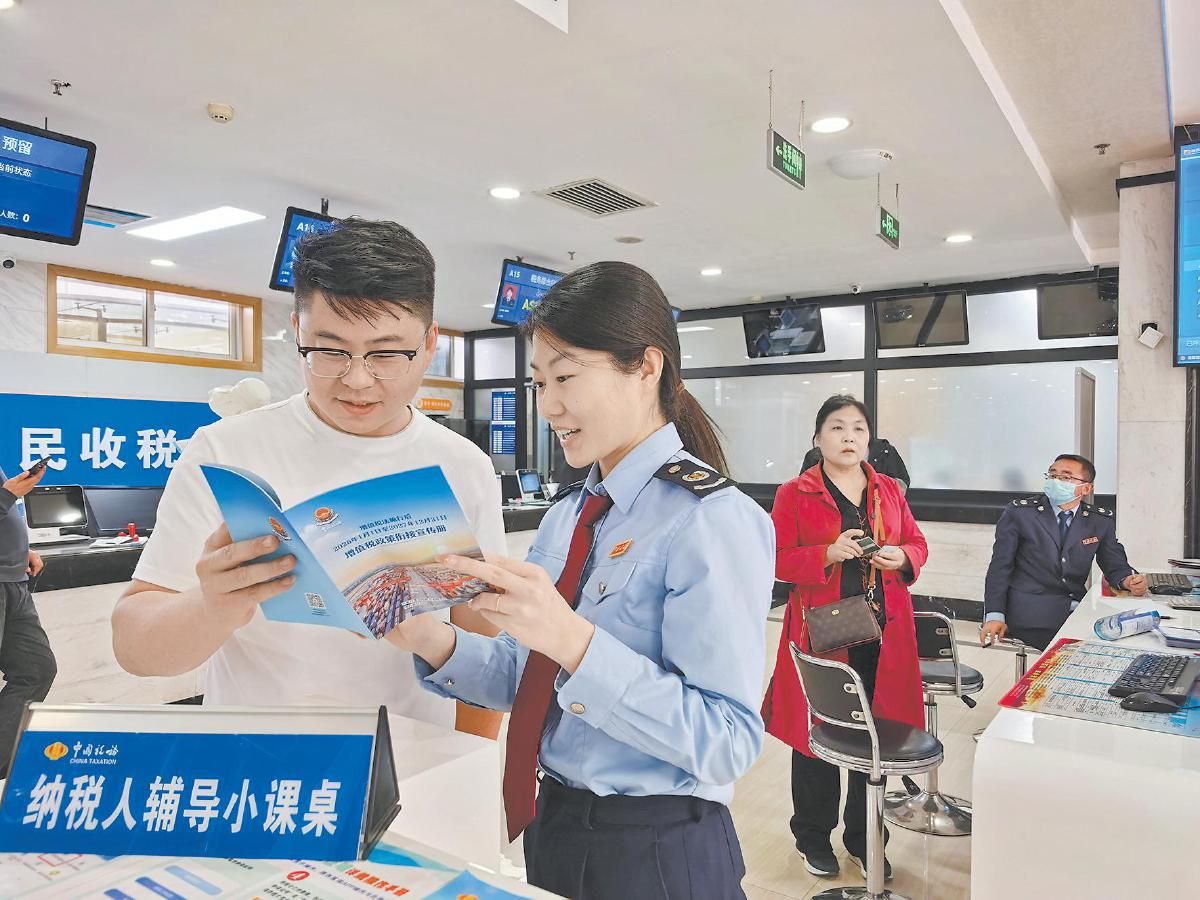 绥德县税务局工作人员为纳税人讲解增值税最新政策。陈子涵 摄