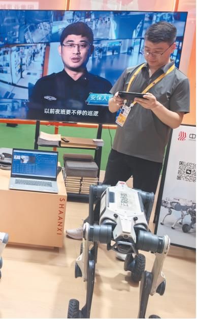 4月13日,在消博会陕西馆,工作人员操控机器狗表演。 记者 肖倩摄