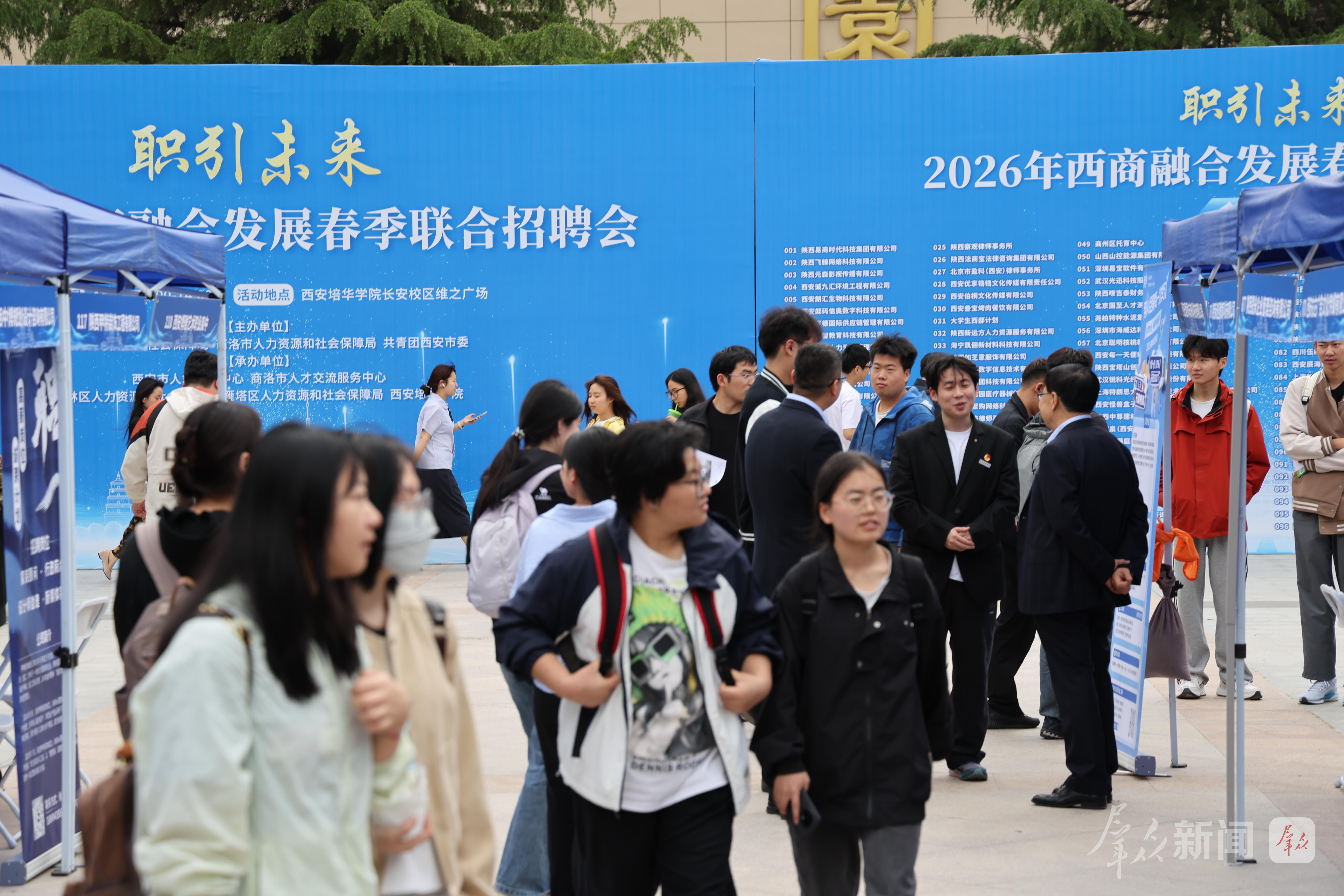 4月28日,由西安市人社局、商洛市人社局、共青团西安市委联合主办的2026年西商融合发展春季联合招聘会在西安培华学院长安校区举办。