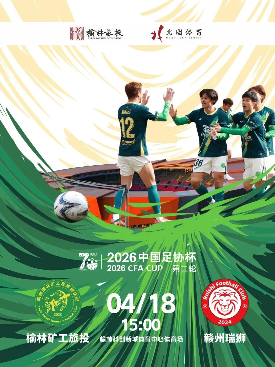 这个周六,榆林的绿茵场要嗨起来了!2026足协杯第二轮重磅登陆榆林,咱们自己的主队——榆林矿工旅投,将于4月18日(周六)下午3点,在榆林体育中心体育场迎战来自江西的劲旅。