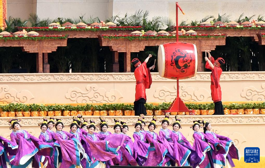 4月11日,演员在甲辰年黄帝故里拜祖大典上表演。新华社记者 郝源 摄