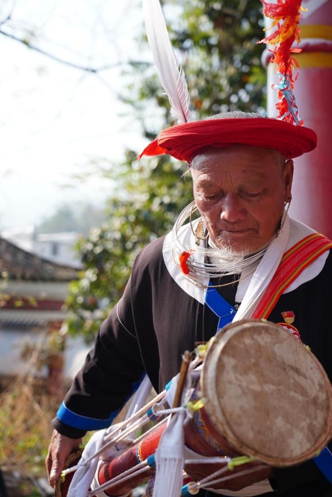 这是瑶族长鼓舞国家级非遗代表性传承人唐桥辛二公。新华社记者 邱晨 摄