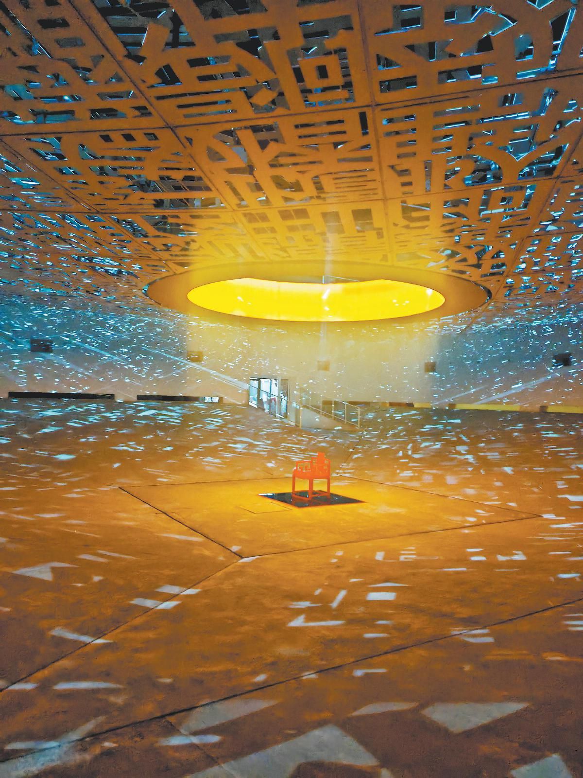 在幻城的情境空间,随处可见的是那把空着的红椅。它是空在穿堂风里的历史,是虚位以待的整个贾府的体温,是《红楼梦》的一个道具,是你来我往的命中注定,是深邃也决绝的“也罢”,可是“其文若何”呢?这把椅,你坐上去,便是百年。我盯着一缕灰尘在光里游走,思索着,借白墙光影里的这方留白,适才发现,大观园的门原来开在天际。天哪,我的天呐!阳光从偌大的空顶里照耀在静置的空椅,用文字做成镂空的苍穹漏下的一颗颗星子,把建筑的呼吸酿成了宇宙的诗。这样的震撼,“只有红楼梦”。