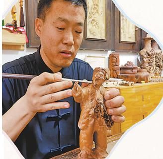 走进“传统美术”的殿堂,匠人的巧手匠心将平凡材料点化成艺术瑰宝。“神木剪纸”与“榆阳剪纸”虽同出一脉,却各具风姿:前者以窗花见长,动物花草造型简练,风格质朴如黄土高原的一抔泥土;后者取材更为广泛,人物、传说、自然景观皆可入画,纤秀处透亮如塞上晨曦,粗犷时浑厚似长城砖石。“米脂罗氏根艺”则崇尚天人合一,以枯木残根为质,借其天然形态、纹理与疤痕进行创作,不损造化之功,使生命在艺术形态中得以延续。“米脂米贴画”则以本地小米为主材,辅以杂粮,拼贴成画,色彩天然去雕饰,造型简洁而意蕴绵长,将最普通的粮食升华为艺术的载体。“佳县泥塑”则以泥土为魂,捏制出一个个生动传神的形象,既融汇了陕北风土的质朴,也镌刻着红色文化的记忆。