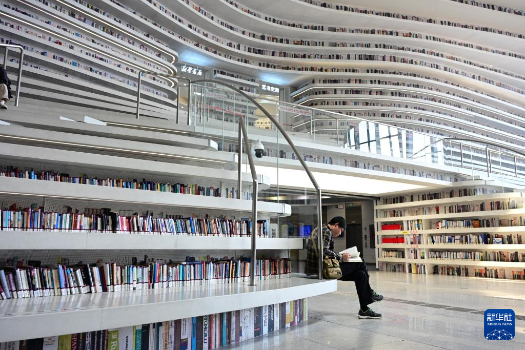 4月23日是世界读书日,不少市民和游客来到天津滨海图书馆,徜徉“书海”,享受阅读的魅力。