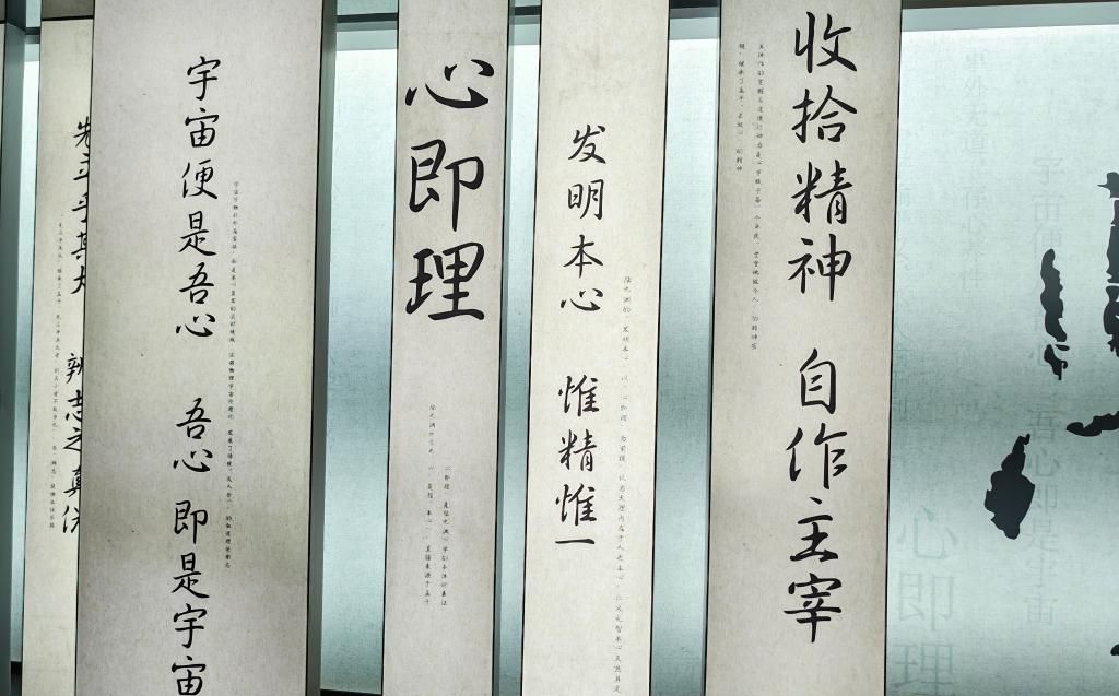 走进金溪陆九渊纪念馆,素白长布垂悬馆中,心学箴言沿布面舒展——“宇宙便是吾心,吾心即是宇宙”的宏阔,“收拾精神,自作主宰”的昂扬,“六经皆我注脚”的通透……字字铿锵,风骨凛然,心学宗师的精神气象尽现眼前。
