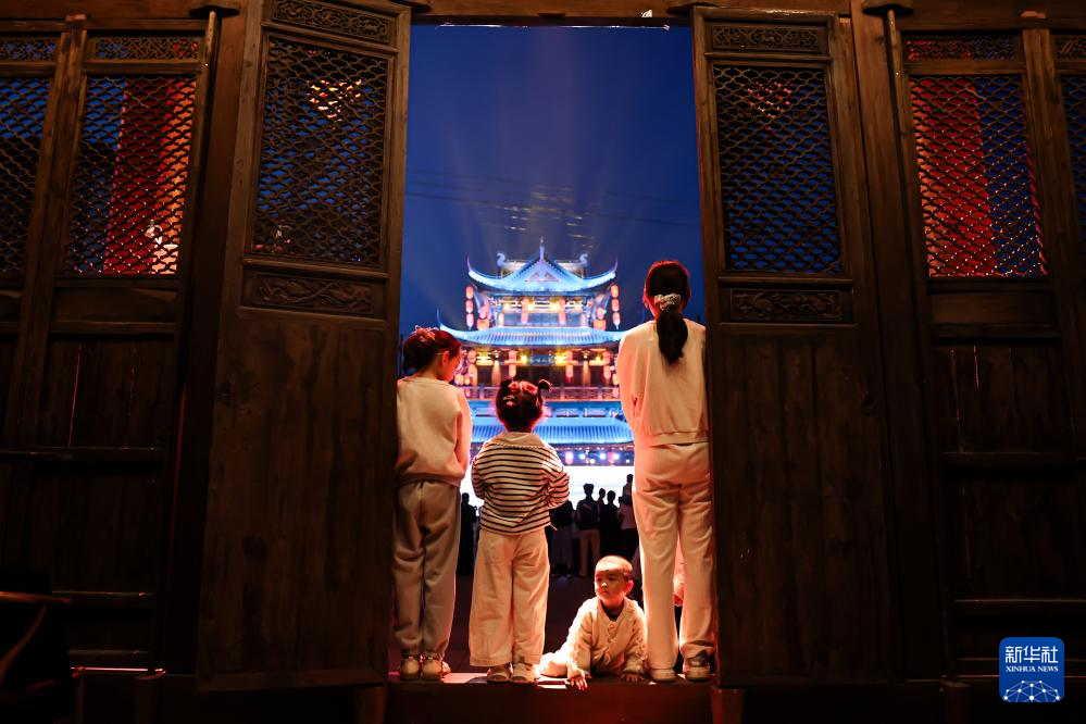 4月25日,在陇南市武都区万象街,小朋友们在观看启动仪式演出。