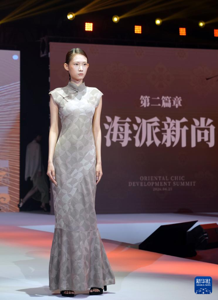 4月25日,以“无境生韵·无界至美”为主题的“华风时尚——2026中华美学时尚发展大会”在上海举行。这是这座时尚之都为促进两岸文化产业合作搭建的新平台。大会特设外场展区,呈现上海文化时尚产业发展成果及两岸青年设计师作品等。