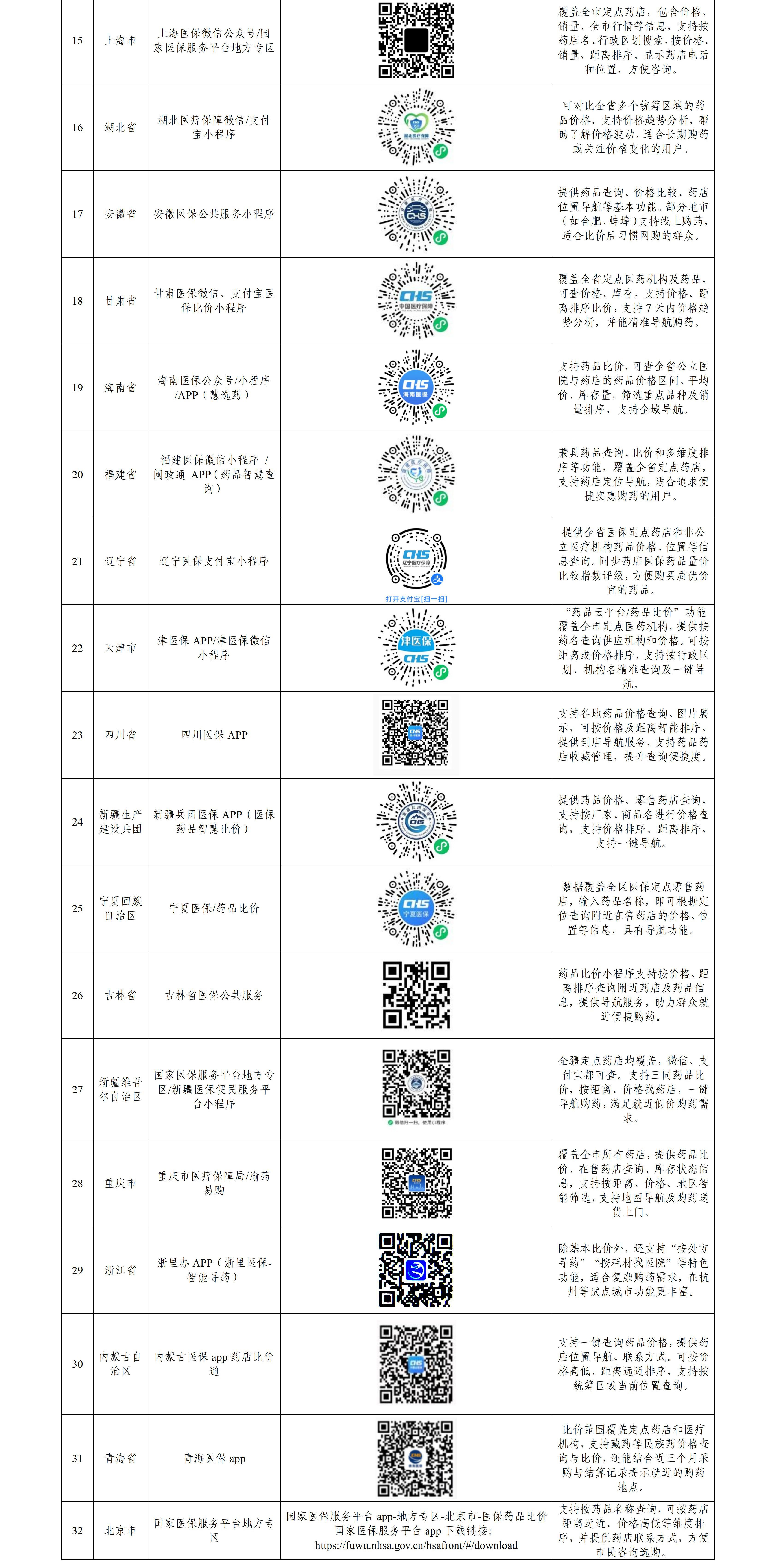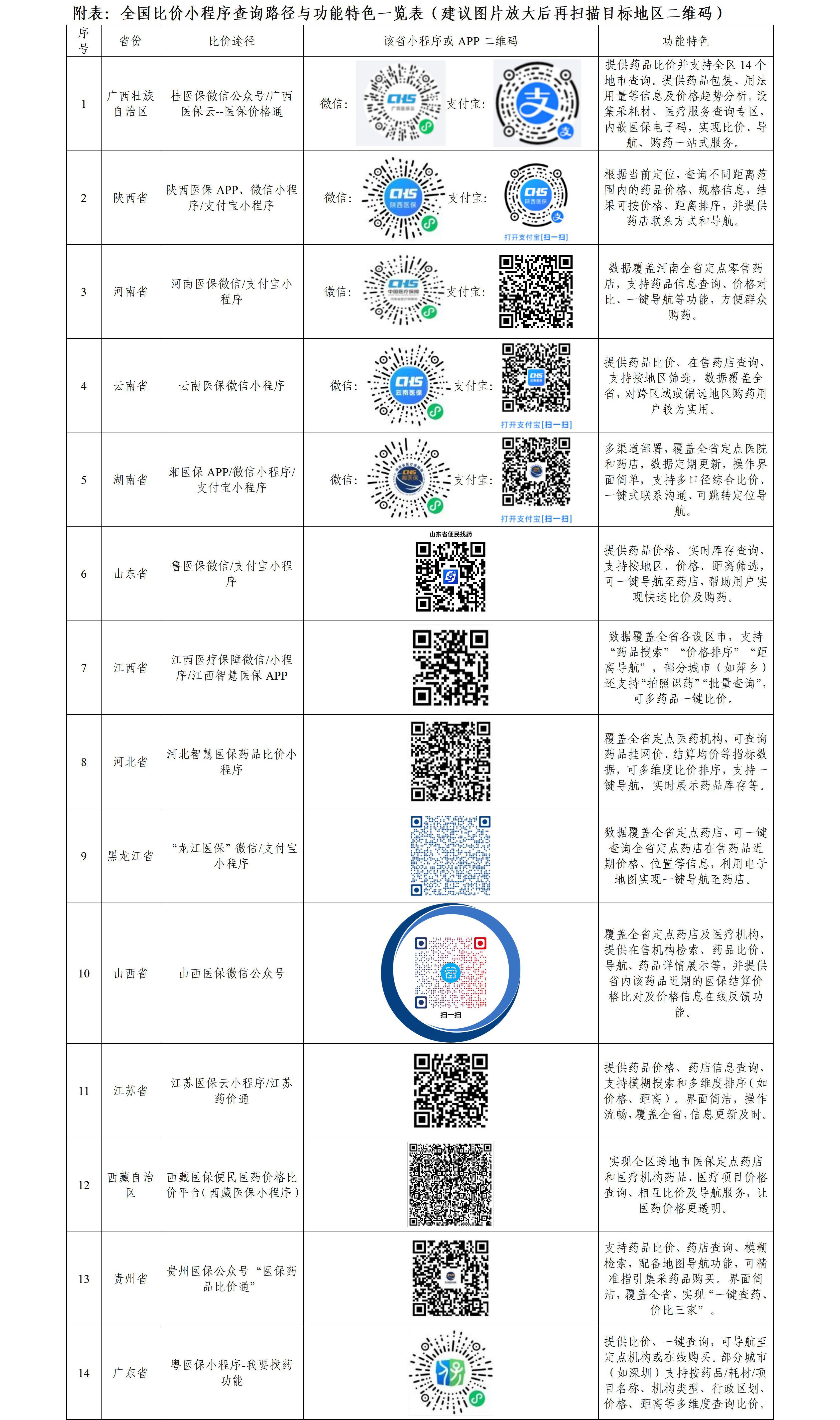 人民网北京4月20日电 (记者乔业琼)据国家医保局官网消息,近日,国务院办公厅印发《关于健全药品价格形成机制的若干意见》,引导药店合理制定药品零售价格,推行医保定点药店医保药品公开比价。国家医保局联合全国31个省(区、市)及新疆生产建设兵团上线“比价小程序”,建议大家购药前多上比价小程序看看,多找几家药店比比,少跑冤枉路,不花冤枉钱。