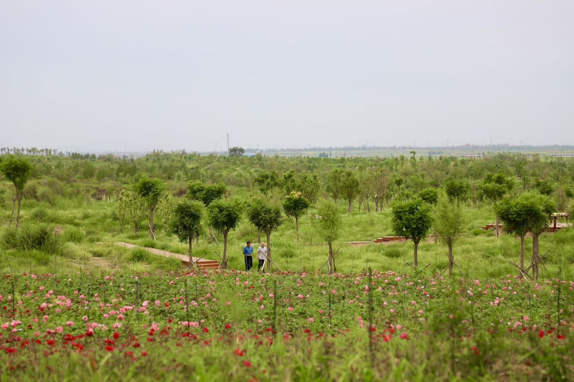 定边县植物园绿意盎然(资料照片)。记者叶子摄