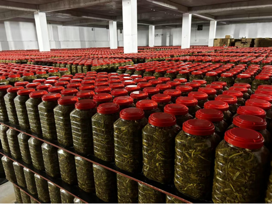 为确保品质,张红春独创“一户一色筐”溯源管理,不同农户的沙盖用不同颜色筐装载,从采摘到加工全程可追溯。她派技术员蹲点田间地头,承诺“市场价跌了保底收,涨了随行就市”。如今,累计600余户农户加入种植,190余名妇女掌握腌制技术,年人均增收1.5万元。