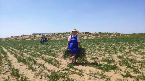 张红春开始琢磨,怎么把原来从附近的鄂尔多斯进货的沙盖菜,慢慢变成家门口就能种、乡亲们都能参与的产业。她一边自己反复试种,一边带着周边农户下地看、手把手教,把适合沙地的种植方法一点点摸清楚,再教给大家。