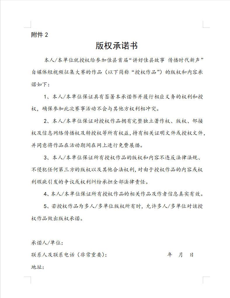 附件:1.佳县第二届“讲好佳县故事·传播时代新声”短视频征集评选活动申报表