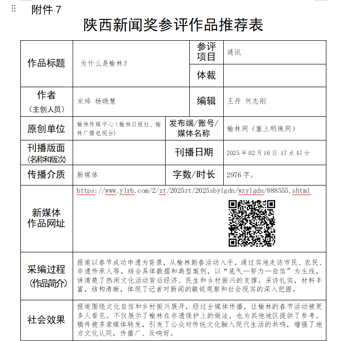 榆林传媒中心关于报送陕西新闻奖参评作品的公示