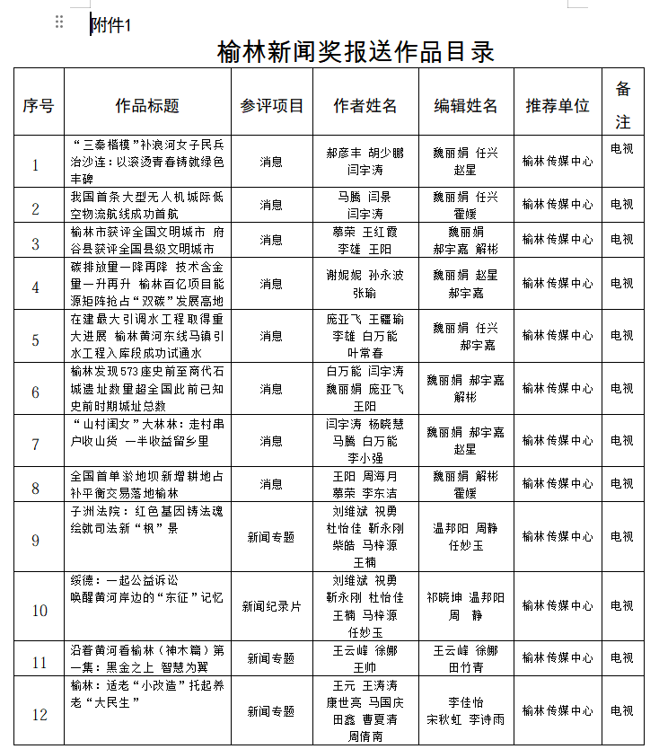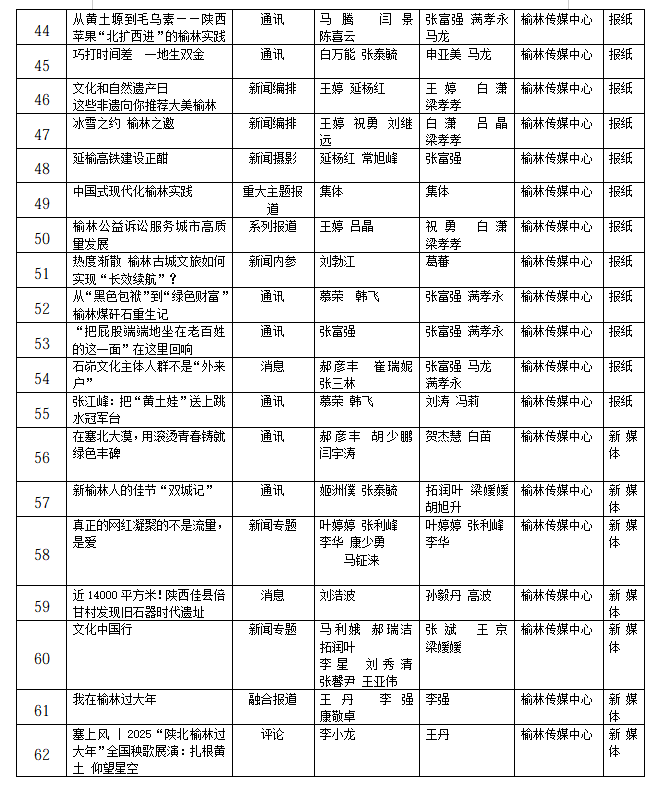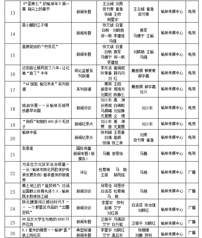 榆林传媒中心关于推荐2025年度榆林新闻奖参评作品的公示