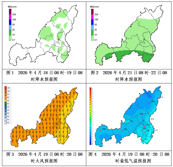 4月18日至21日我市有寒潮、大风沙尘和降水天气