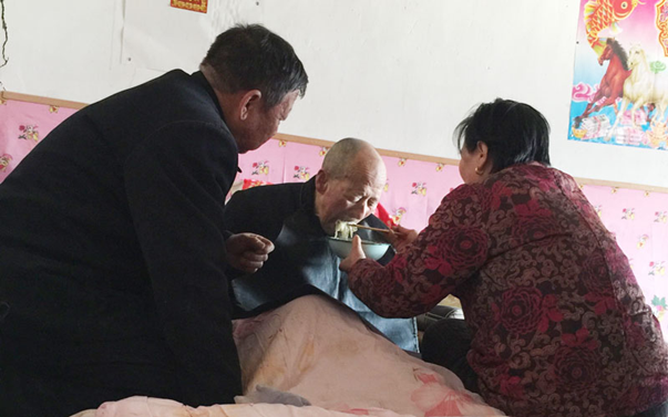 公公高龄,经常小便失禁,加之瘫痪在床时间又久,她给买好褥疮垫、尿不湿等,在她的细心照顾下,公公的身体至始至终都没有出现褥疮。她端屎接尿,洗衣喂饭,翻身子,换被褥,14年如一日的一如既往,为公公擦身子,难免有羞涩之处,可为了尽孝,她无怨无悔。