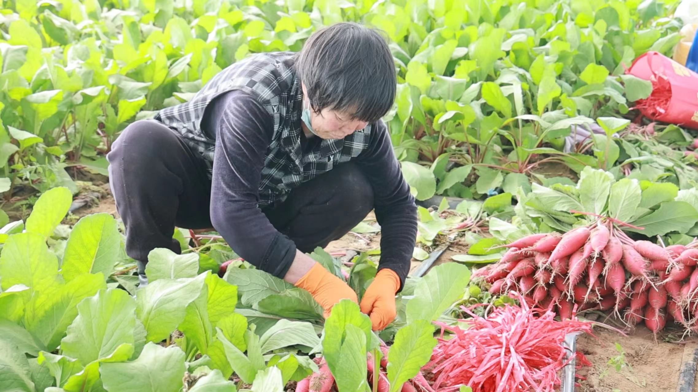 4月14日,走进定边街道十里沙村种植户胡飞虎的蔬菜大棚,一垄垄水萝卜缨绿鲜亮、根块圆润饱满,长势十分喜人。村民穿梭在田间,熟练地进行拔萝卜、去茎叶、整理装筐等作业,抢抓农时将新鲜蔬菜采收上市。凭借优良品质,这些蔬菜深受市场青睐。“我家种了12个大棚,一棚产量能达到5000斤左右,这一茬收益可达六七万元。”胡飞虎说。