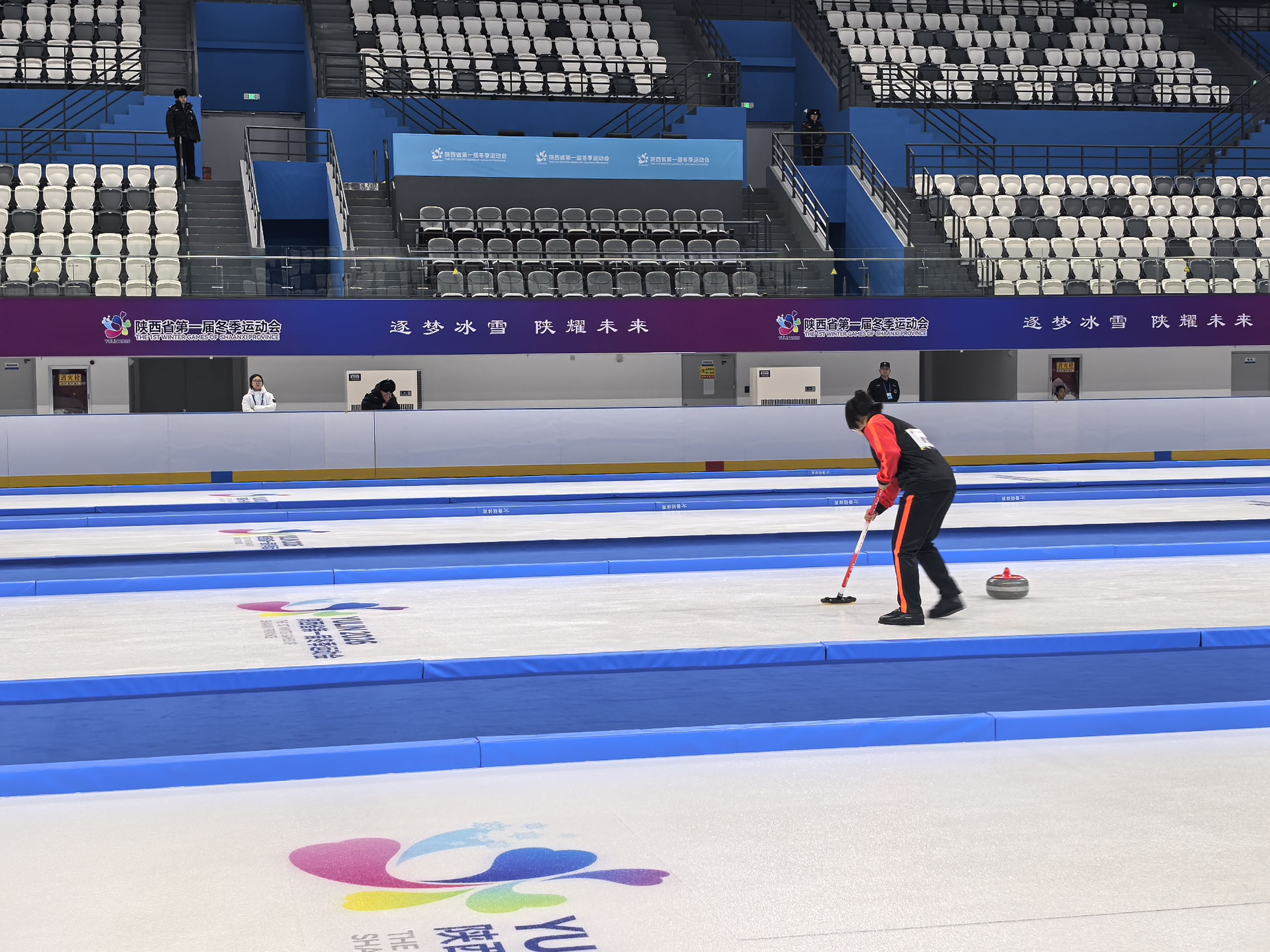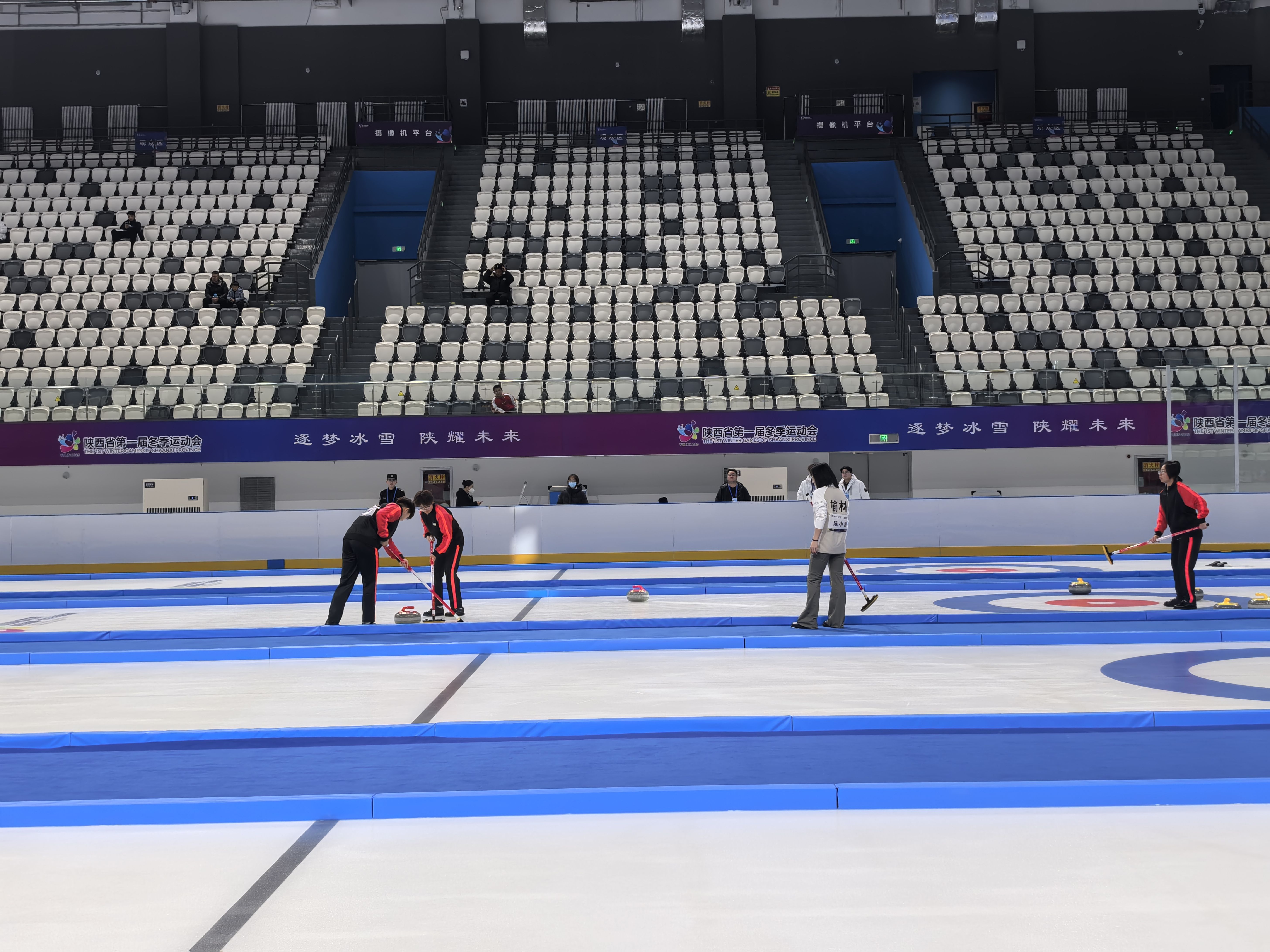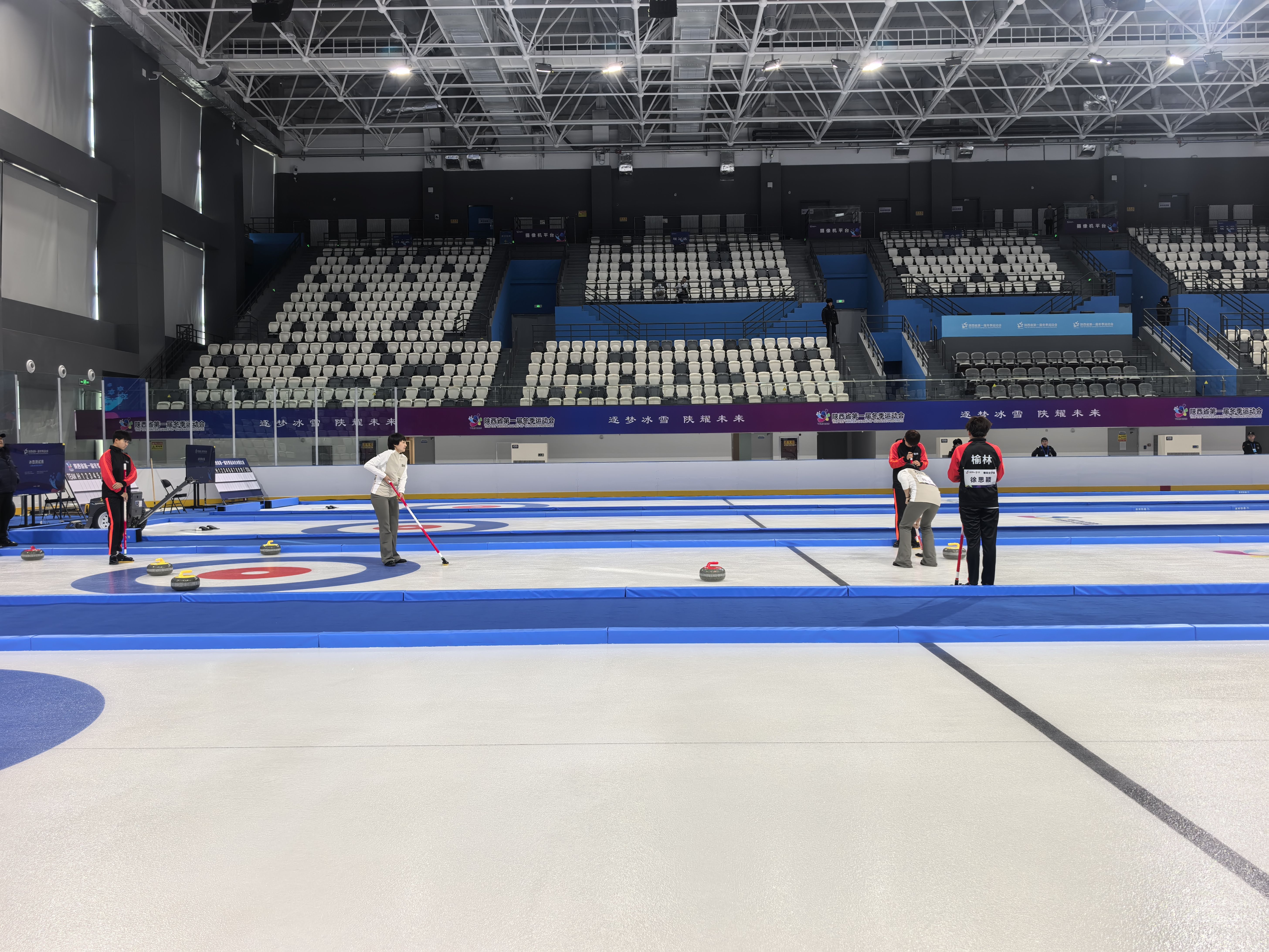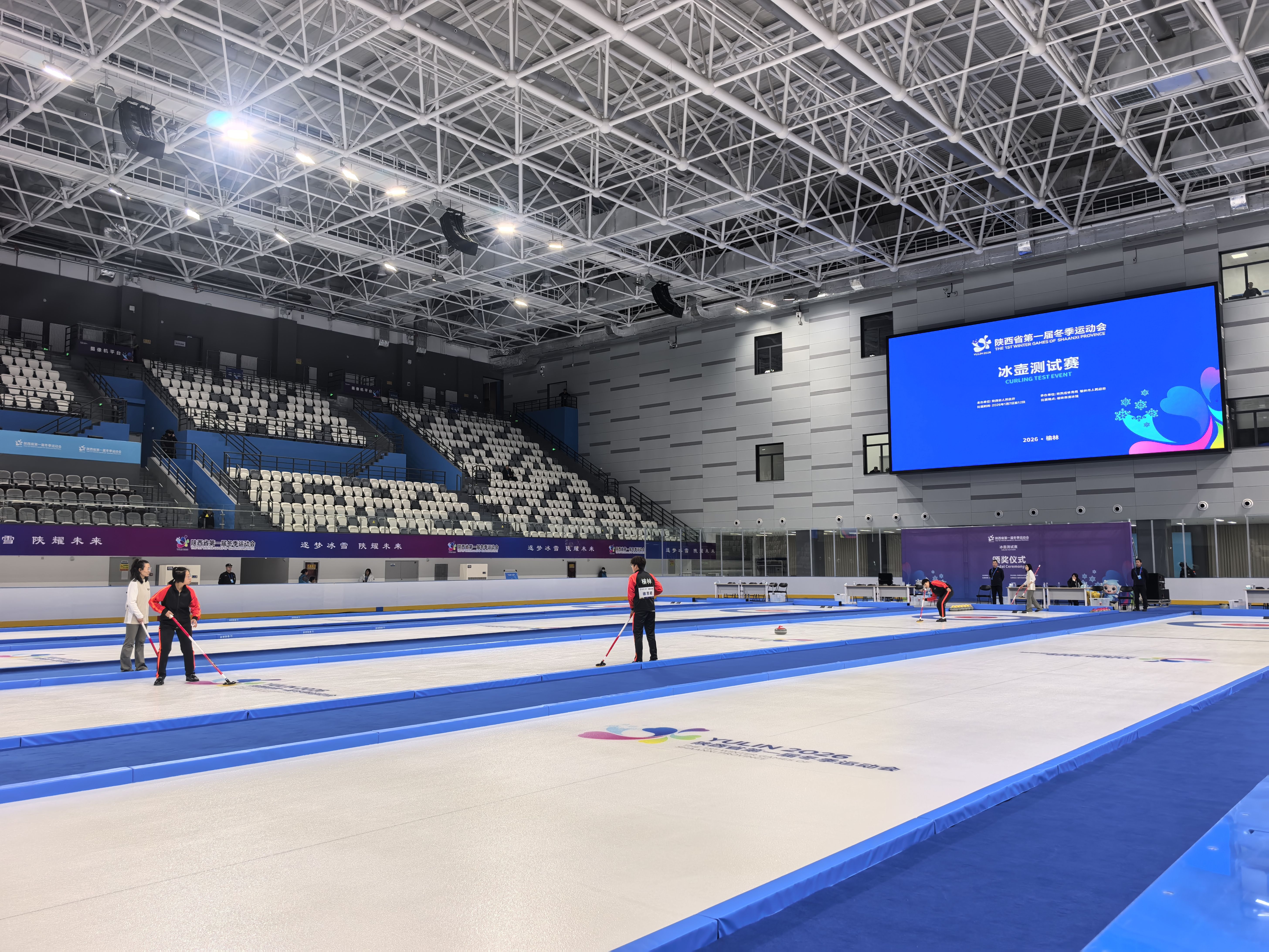 榆林市滑冰馆场馆负责人白治国介绍:“这是场馆建成后首场正式赛事,各项保障工作有序推进。此次全要素实战测试,不仅为省一冬会冰壶正赛保驾护航,也将为后续滑冰、冰球等项目举办积累宝贵经验。”